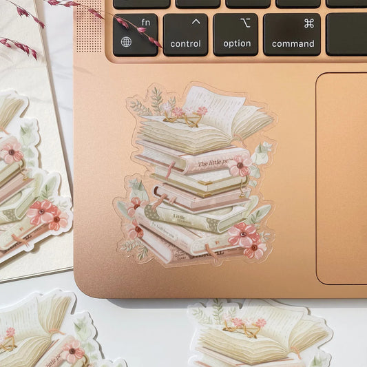 Stacked Books Clear Vinyl Sticker