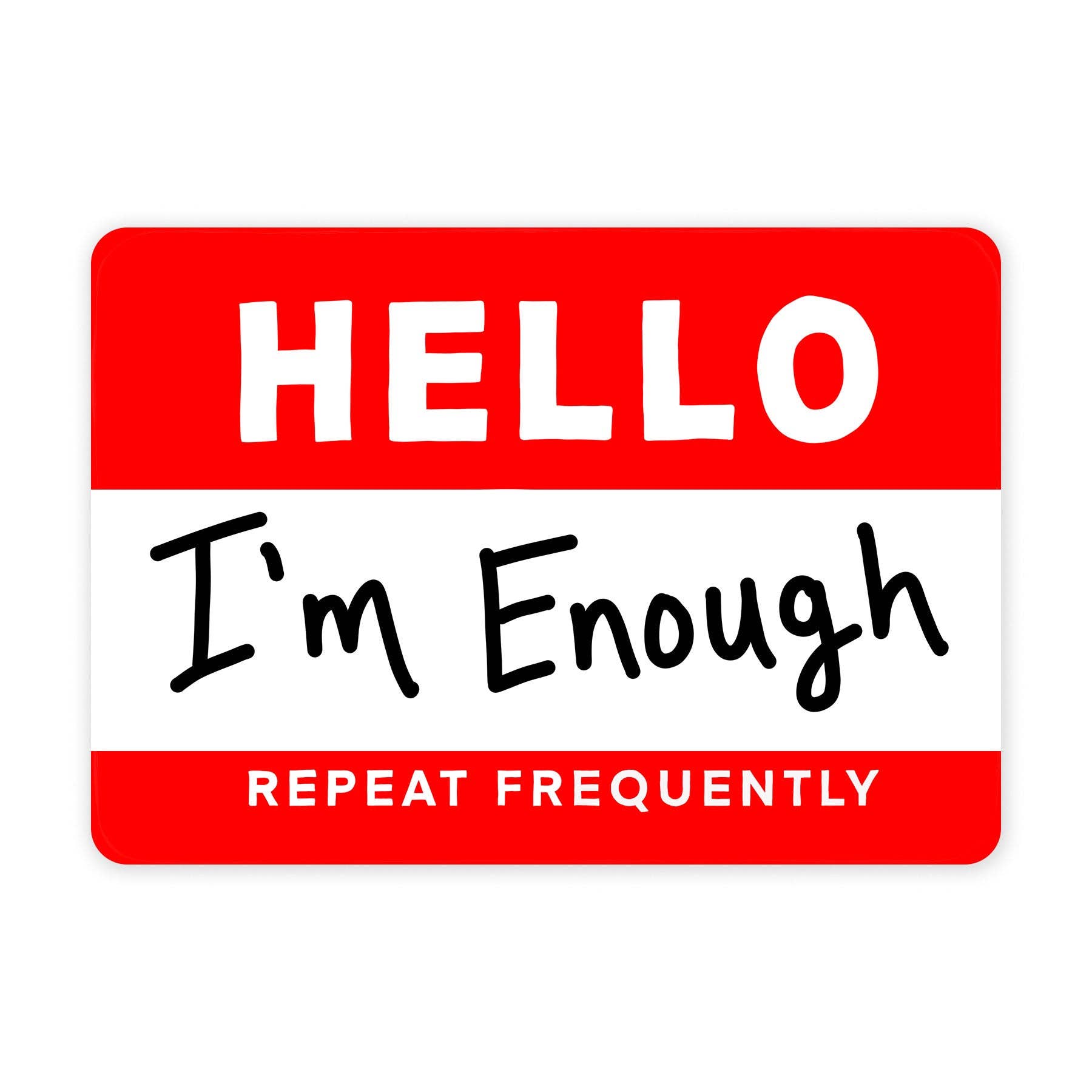Don't let anyone tell you differently - you ARE enough! This mini sticker features the simple but powerful message "I Am Enough," perfect for reminding yourself of your daily worth! Let this sticker be your life motto with its bold font on a name tag design!